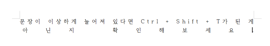 3. 글자 간격 줄이기 : Alt + Shift + N, 글자 간격 늘이기 : Alt + Shift + W