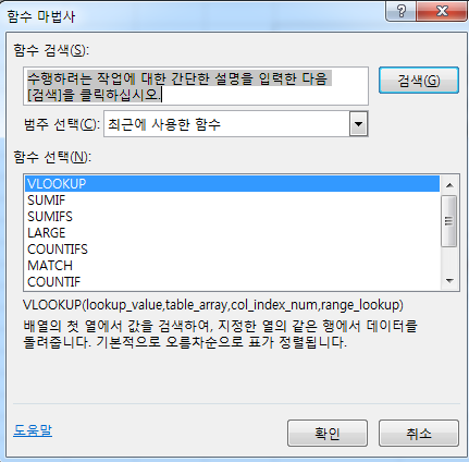 함수마법사를 사용하면 필요한 주제에 대한 함수를 빠르게 찾을 수 있고