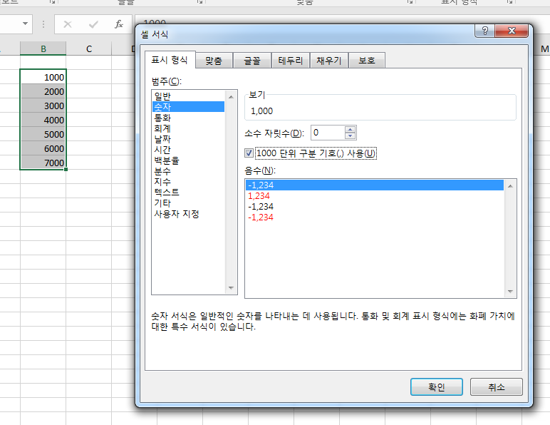 | 사용자 서식에서 콤마는 천 단위를 의미합니다. |