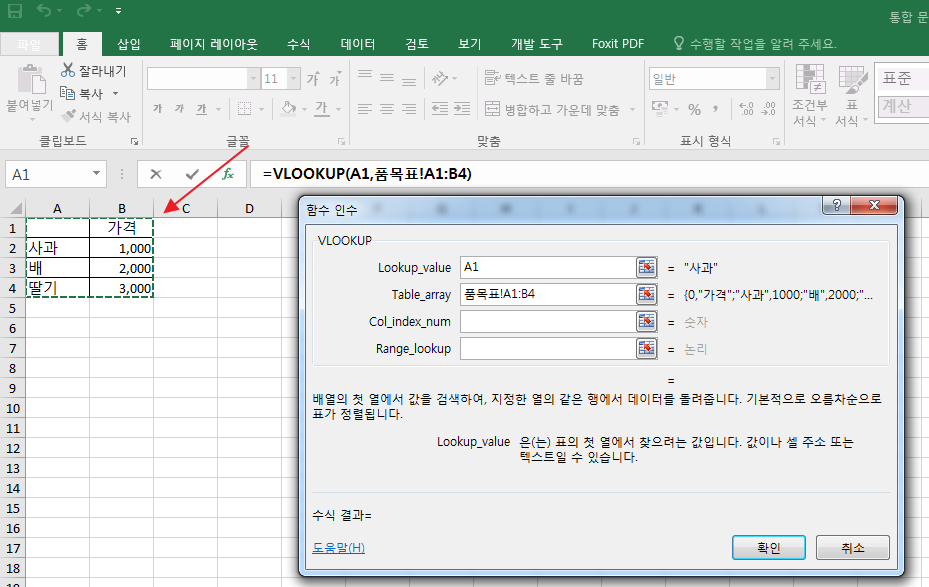 확인해보니 모두 정확하게 A1값을 가지고 품목 표에서 가격을 찾은 것을 확인할 수 있습니다.