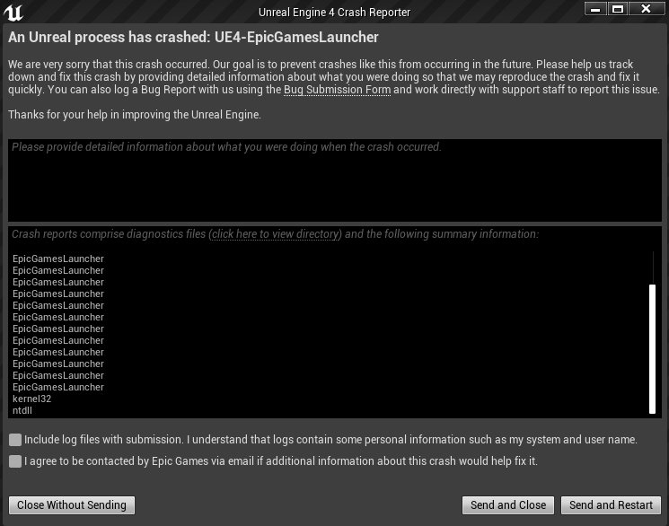 에픽게임즈 an unreal process has crashed ue4- epic games launcher 해결법